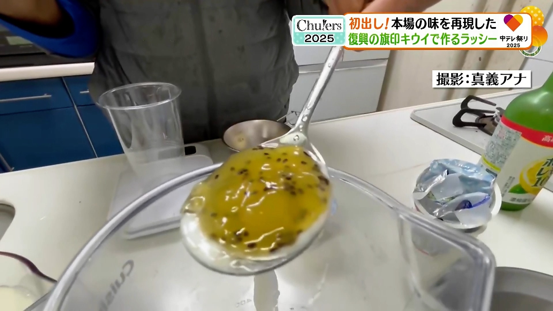 そして何度も試作を重ねること3時間、ついにキウイの酸味と牛乳の甘さのバランスが取れたラッシーが完成しました。